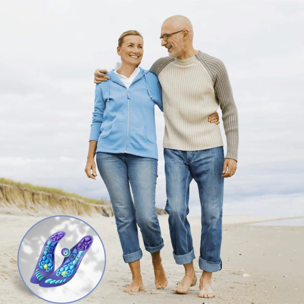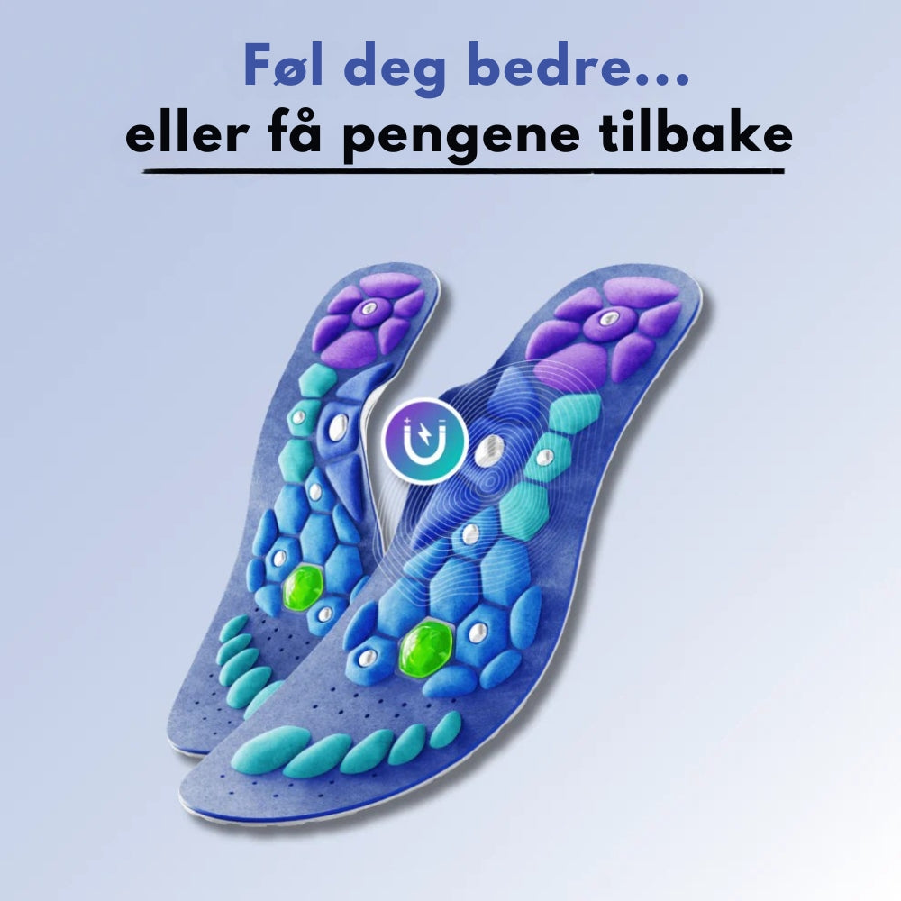 Vanlige såler føles gode én dag – men smerten kommer ofte tilbake. De terapeutiske magnetsonene i disse sålene reagerer på trykket fra foten og nervesignalene dine for å skape ekte og varig forandring. Dette er heling fra innsiden – ikke bare en myk pute under foten.